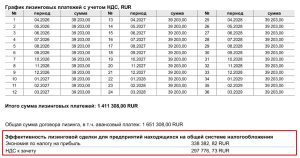Лизинговые платежи полностью учитываются в составе расходов при расчёте налога на прибыль, что снижает налогооблагаемую базу. При этом НДС, уплаченный по лизинговым платежам, подлежит вычету. В совокупности налоговая экономия может достигать 30–45% от суммы платежей — значительно выгоднее, чем при оформлении банковского кредита, где проценты учитываются с ограничениями