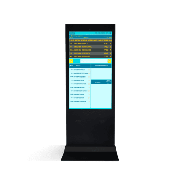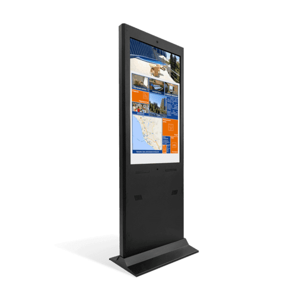 Особенности: защитное стекло. При помощи датчиков освещенности экран изменяет яркость от 500 до 2500 нит., Интерактивное устройство используется для навигации и в качестве рекламного носителя при любых погодных условиях. Прочный противовандальный корпус, система климат-контроля